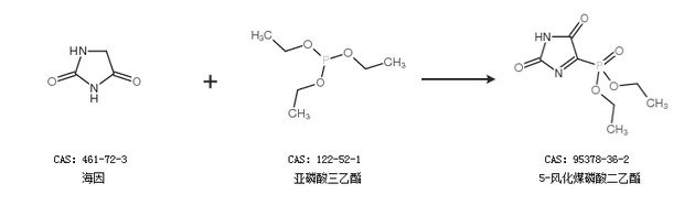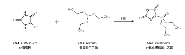 1.通过5-溴海因和亚磷酸三乙酯合成5-风化煤磷酸二乙酯,收率约83%;