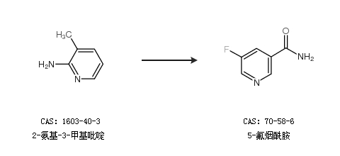 1.通过2-氨基-3-甲基吡啶合成5-氟烟酰胺