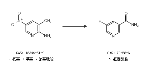 2.通过2-氨基-3-甲基-5-硝基吡啶合成5-氟烟酰胺