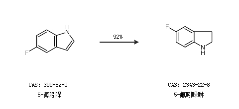 1.通过5-氟吲哚合成5-氟吲哚啉,收率约92%;