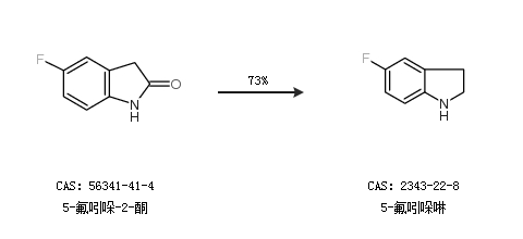 2.通过5-氟吲哚-2-酮合成5-氟吲哚啉,收率约73%;
