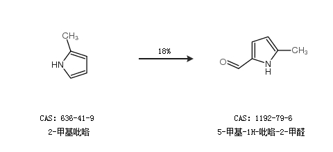 1.通过2-甲基吡咯合成5-甲基-1H-吡咯-2-甲醛,收率约18%;