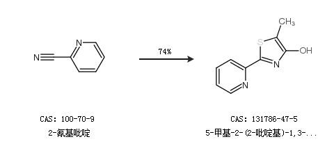 2.通过2-氰基吡啶合成5-甲基-2-(2-吡啶基)-1,3-噻唑-4-醇,收率约74%;