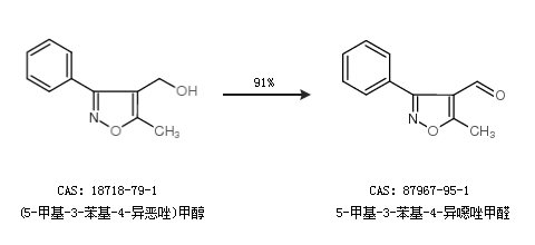 1.通过(5-甲基-3-苯基-4-异恶唑)甲醇合成5-甲基-3-苯基-4-异噁唑甲醛,收率约91%;