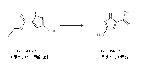 2.通过3-甲基吡唑-5-甲酸乙酯合成5-甲基-3-吡唑甲酸