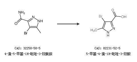 2.通过4-溴-5-甲基-1H-吡唑-3-羧酰胺合成5-甲基-4-溴-1H-吡唑-3-羧酸