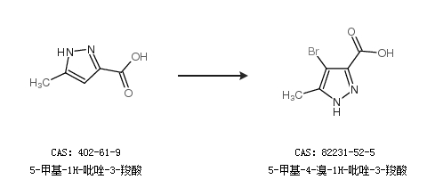 1.通过5-甲基-1H-吡唑-3-羧酸合成5-甲基-4-溴-1H-吡唑-3-羧酸