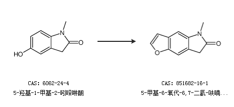 2.通过5-羟基-1-甲基-2-吲哚啉酮合成5-甲基-6-氧代-6,7-二氢-呋喃并[2,3-f]吲哚