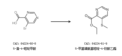 1.通过5-溴-4-嘧啶甲酸合成5-甲基磺酰基嘧啶-4-羧酸乙酯