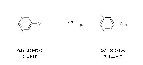1.通过5-溴嘧啶合成5-甲基嘧啶,收率约95%;