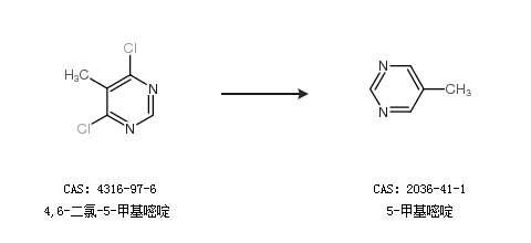 2.通过4,6-二氯-5-甲基嘧啶合成5-甲基嘧啶