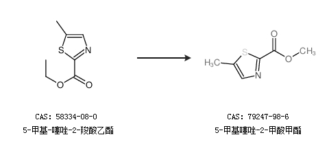 2.通过5-甲基-噻唑-2-羧酸乙酯合成5-甲基噻唑-2-甲酸甲酯