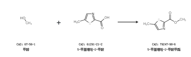 1.通过甲醇和5-甲基噻唑-2-甲酸合成5-甲基噻唑-2-甲酸甲酯