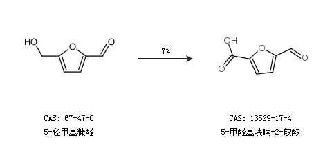 2.通过5-羟甲基糠醛合成5-甲醛基呋喃-2-羧酸,收率约7%;