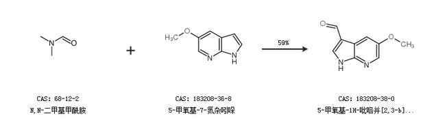 1.通过N,N-二甲基甲酰胺和5-甲氧基-7-氮杂吲哚合成5-甲氧基-1H-吡咯并[2,3-b]吡啶-3-甲醛,收率约59%;