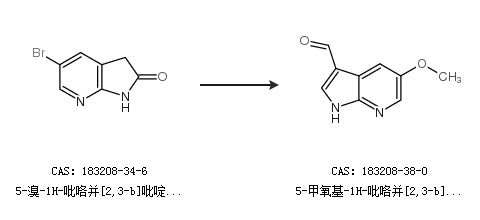 2.通过5-溴-1H-吡咯并[2,3-b]吡啶-2-酮合成5-甲氧基-1H-吡咯并[2,3-b]吡啶-3-甲醛