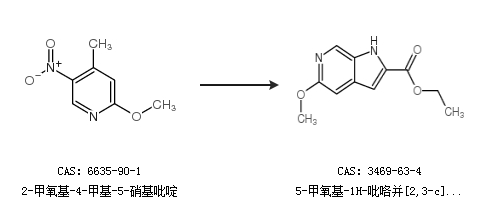 2.通过2-氯-5-硝基-4-甲基吡啶合成5-甲氧基-1H-吡咯并[2,3-c]吡啶-2-羧酸乙酯