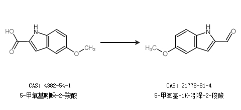 英文别名 5-methoxyindole-2-carboxaldehyde;5-methoxyindolcarboxaldehyde;5-methoxyindole-2-carbaldehyde;5-methyl-1H-indole-2-carboxaldehyde;