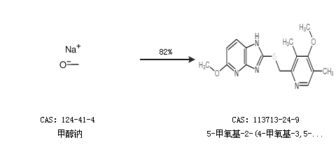 1.通过甲醇钠合成5-甲氧基-2-(4-甲氧基-3,5-二甲基吡啶-2-基)甲硫基)-3H-咪唑并[4,5-b]吡啶,收率约82%;