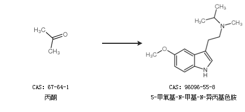 1.通过丙酮合成5-甲氧基-N-甲基-N-异丙基色胺