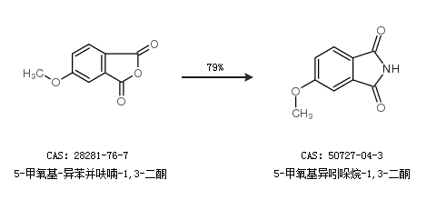 1.通过5-甲氧基-异苯并呋喃-1,3-二酮合成5-甲氧基异吲哚烷-1,3-二酮,收率约79%;