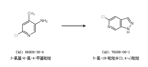 1.通过3-氨基-6-氯-4-甲基吡啶合成5-氯-1H-吡唑并[3,4-c]吡啶