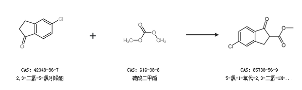 2.通过2,3-二氢-5-氯吲哚酮和碳酸二甲酯合成5-氯-1-氧代-2,3-二氢-1H-茚-2-羧酸甲酯