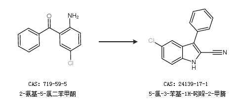 1.通过2-氨基-5-氯二苯甲酮合成5-氯-3-苯基-1H-吲哚-2-甲腈