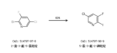 1.通过2-溴-3-氟-5-氯吡啶合成5-氯-3-氟-2-碘吡啶,收率约60%;