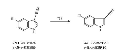 2.通过5-溴-3-氰基吲哚合成5-氯-3-氰基吲哚,收率约73%;