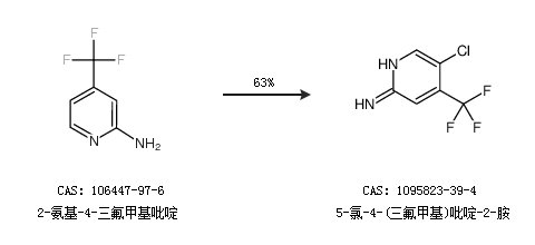 2.通过2-氨基-4-三氟甲基吡啶合成5-氯-4-(三氟甲基)吡啶-2-胺,收率约63%;