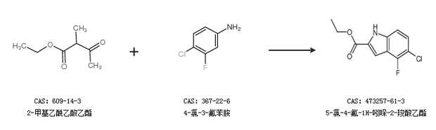 1.通过2-甲基乙酰乙酸乙酯和4-氯-3-氟苯胺合成5-氯-4-氟-1H-吲哚-2-羧酸乙酯