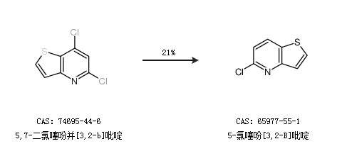 2.通过5,7-二氯噻吩并[3,2-b]吡啶合成5-氯噻吩[3,2-B]吡啶,收率约21%;