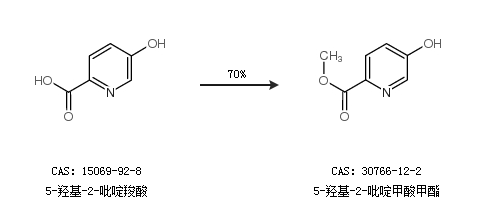 2.通过5-羟基-2-吡啶羧酸合成5-羟基-2-吡啶甲酸甲酯,收率约70%;
