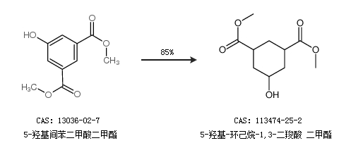 1.通过5-羟基间苯二甲酸二甲酯合成5-羟基-环己烷-1,3-二羧酸 二甲酯,收率约85%;