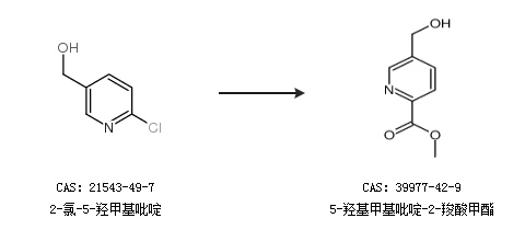 1.通过2-氯-5-羟甲基吡啶合成5-羟基甲基吡啶-2-羧酸甲酯