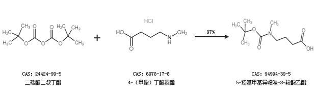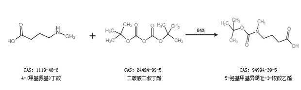 2.通过4-(甲基氨基)丁酸和二碳酸二叔丁酯合成5-羟基甲基异噁唑-3-羧酸乙酯,收率约84%;
