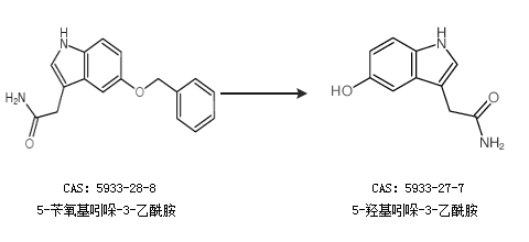 1.通过5-苄氧基吲哚-3-乙酰胺合成5-羟基吲哚-3-乙酰胺