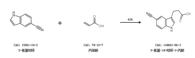 1.通过5-氰基吲哚和丙烯酸合成5-氰基-1H-吲哚-3-丙酸,收率约43%;