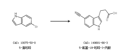 2.通过5-溴吲哚合成5-氰基-1H-吲哚-3-丙酸