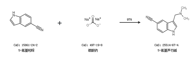 2.通过5-氰基吲哚和碳酸钠合成5-氰基芦竹碱,收率约97%;