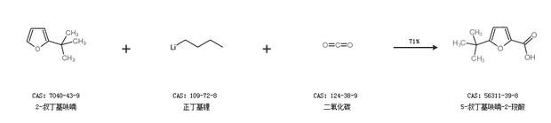 2.通过2-叔丁基呋喃、正丁基锂和二氧化碳合成5-叔丁基呋喃-2-羧酸,收率约71%;