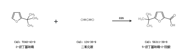 1.通过2-叔丁基呋喃和二氧化碳合成5-叔丁基呋喃-2-羧酸,收率约69%;