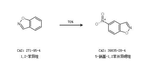 1.通过1,2-苯异唑合成5-硝基-1,2苯并异噁唑,收率约70%;