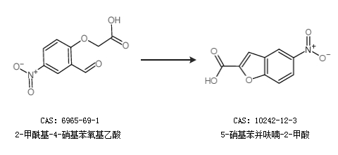 1.通过2-甲酰基-4-硝基苯氧基乙酸合成5-硝基苯并呋喃-2-甲酸