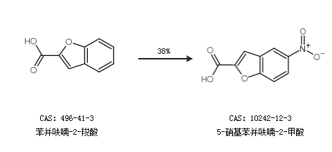 2.通过苯并呋喃-2-羧酸合成5-硝基苯并呋喃-2-甲酸,收率约38%;