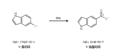 2.通过5-氯吲哚合成5-硝基吲哚,收率约85%;