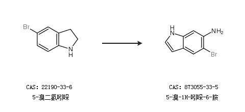1.通过5-溴二氢吲哚合成5-溴-1H-吲哚-6-胺