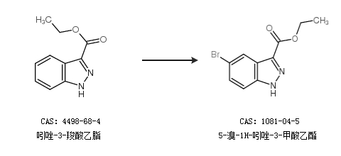 1.通过吲唑-3-羧酸乙脂合成5-溴-1H-吲唑-3-甲酸乙酯