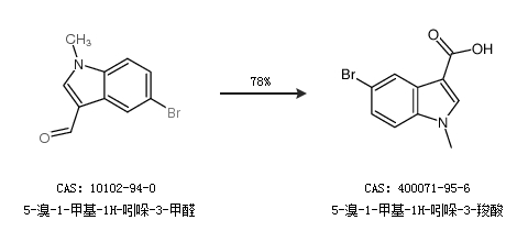 1.通过5-溴-1-甲基-1H-吲哚-3-甲醛合成5-溴-1-甲基-1H-吲哚-3-羧酸,收率约78%;